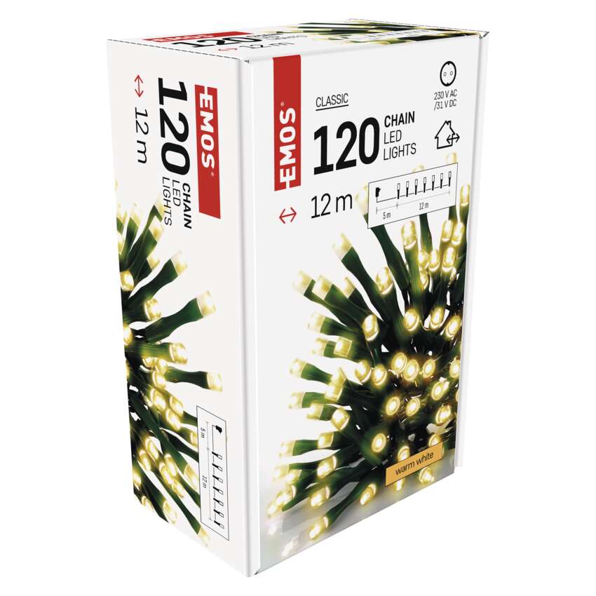 A CLASSIC LED-láncok az EMOS-tól többféle formában - klasszikus láncok, fürtök és cseppkövek - kaphatók. Elengedhetetlenek a megfelelő ünnepi hangulat megteremtéséhez. Nagyszerűen fognak kinézni egy hagyományos karácsonyfán, alkalmasak bútorok, korlátok, gerendák vagy ajtók díszítésére a belső térben.Kültéren is használhatja őket bokrok, fák, pergolák, pavilonok stb. megvilágítására.