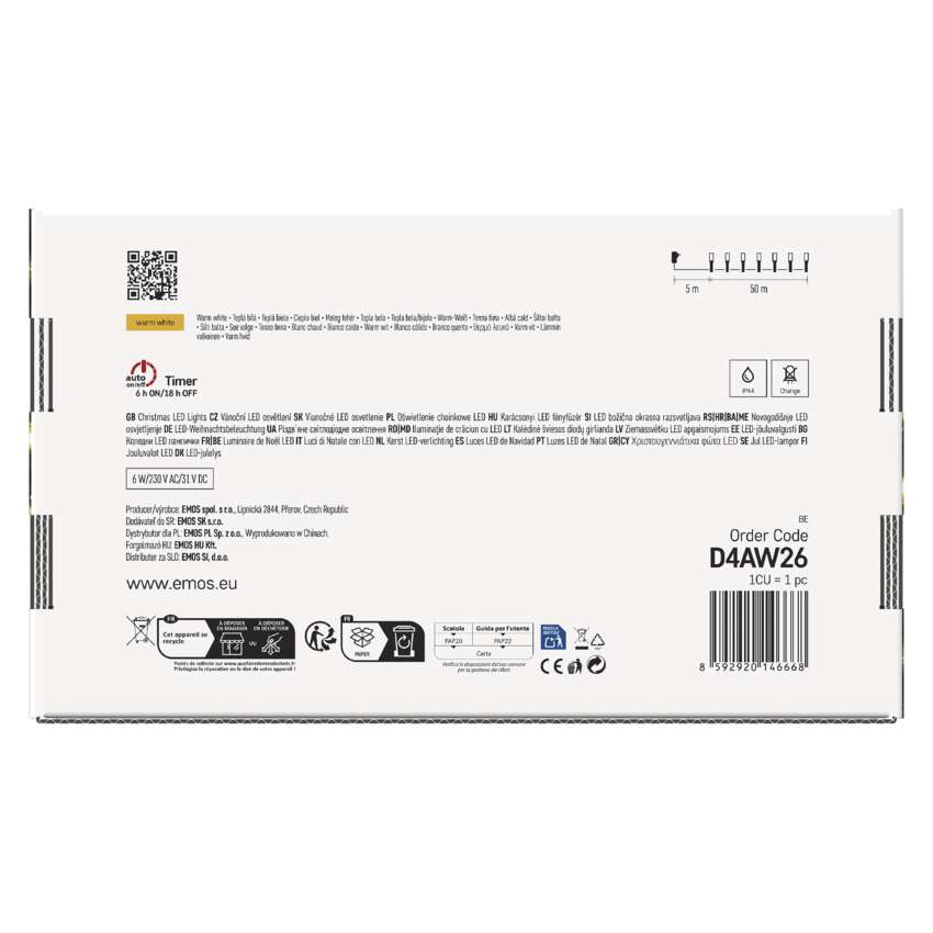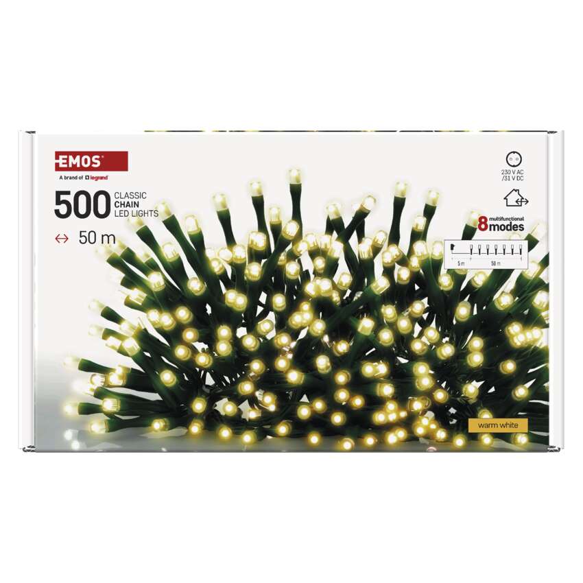 LED karácsonyi fényfüzér, 50 m, kültéri és beltéri, meleg fehér, progr, időz.