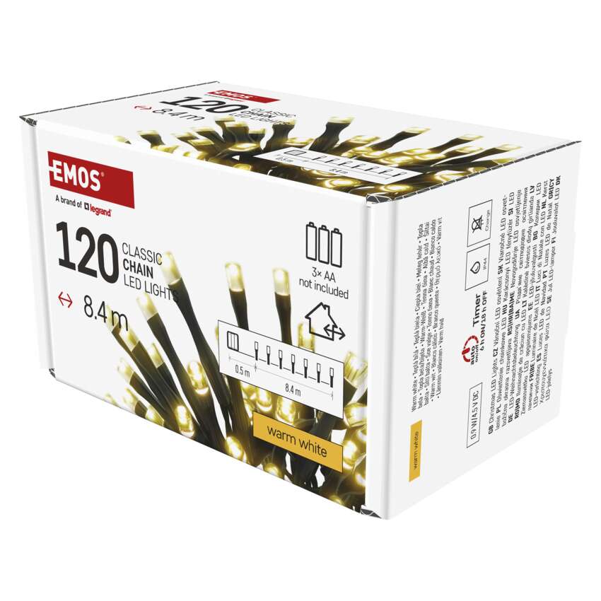 LED karácsonyi fényfüzér, 8,4 m, 3x AA, kültéri és beltéri, meleg fehér, időzítő
