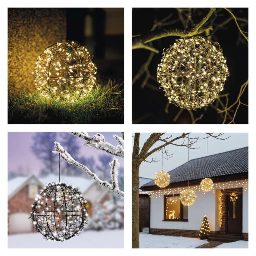 LED karácsonyi gömbök - 200 LED, kültéri és beltéri, meleg fehér