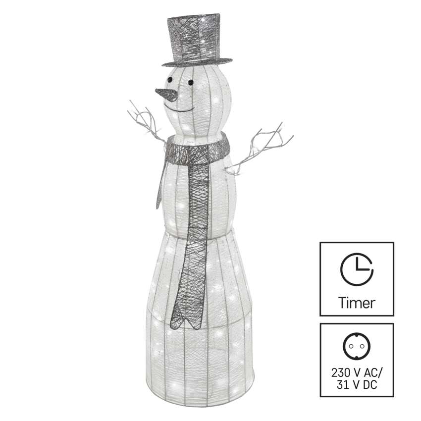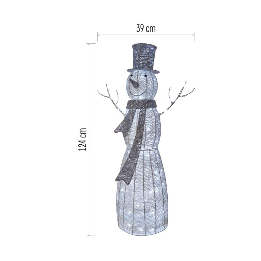 LED karácsonyi hóember, rattan, 124 cm, beltéri, hideg fehér, időzítő