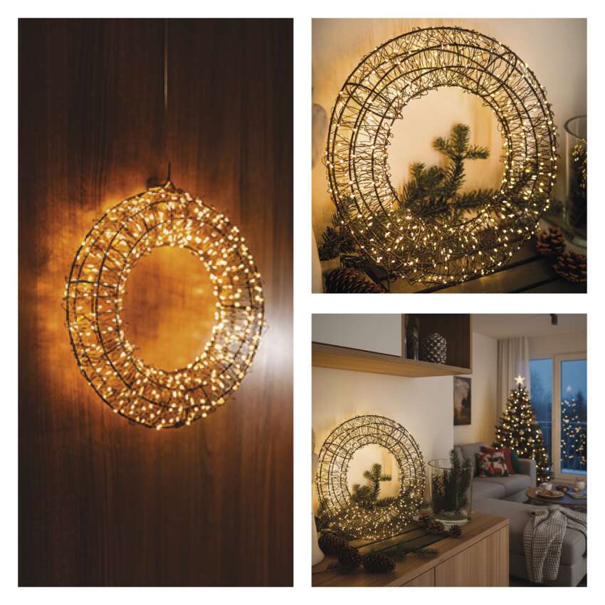 LED karácsonyi koszorú, 480 LED, külső és belső, meleg fehér