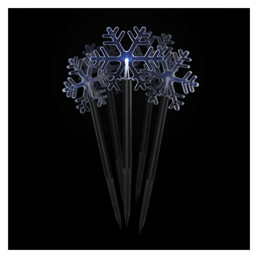 Hogyan teremthetsz varázslatos karácsonyi hangulatot kertedben, előkertedben, virágágyásodban, díszítő sziklakertedben vagy feljáródon nagyon egyszerűen? A válasz a szúrós hópelyhek, amelyek hideg fehér fényükkel feldobják az egyébként sötét sarkokat, és ünnepi hangulatot varázsolnak beléjük. A hagyományos földbe szúrás mellett ezt a dekorációt cserépben vagy gallyban is elhelyezheti, például az erkélyen. A helyszín kiválasztásakor nem korlátozza Önt a konnektor jelenléte, a dekoráció AA elemekkel működik.