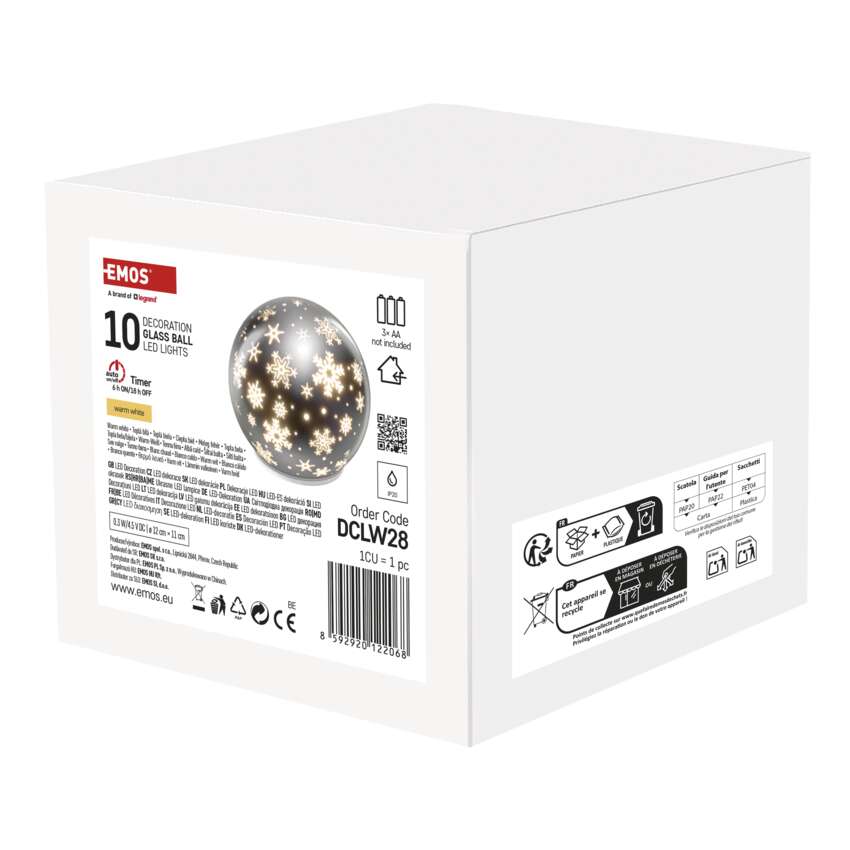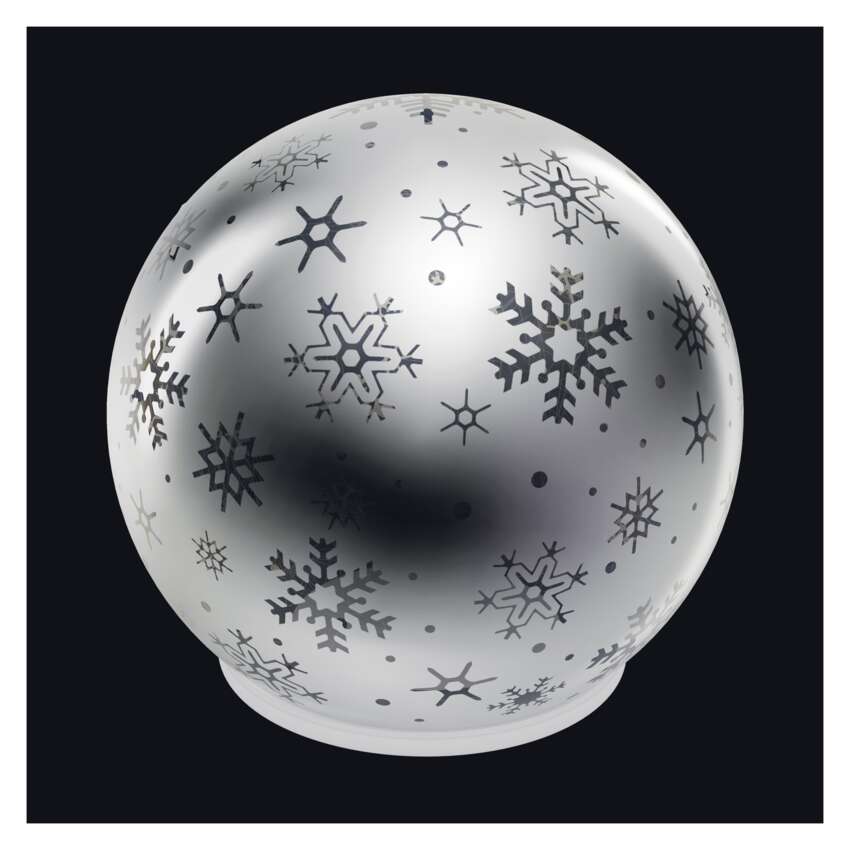 LED karácsonyi üveggömb – hópelyhek, 12 cm, 3x AA, beltéri, meleg fehér, időzítő