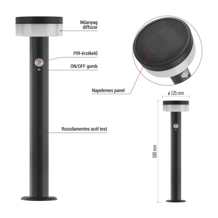 LED napelemes kerti lámpa TERION szürkületérzékelővel, 12,5 x 12,5 x 50 cm