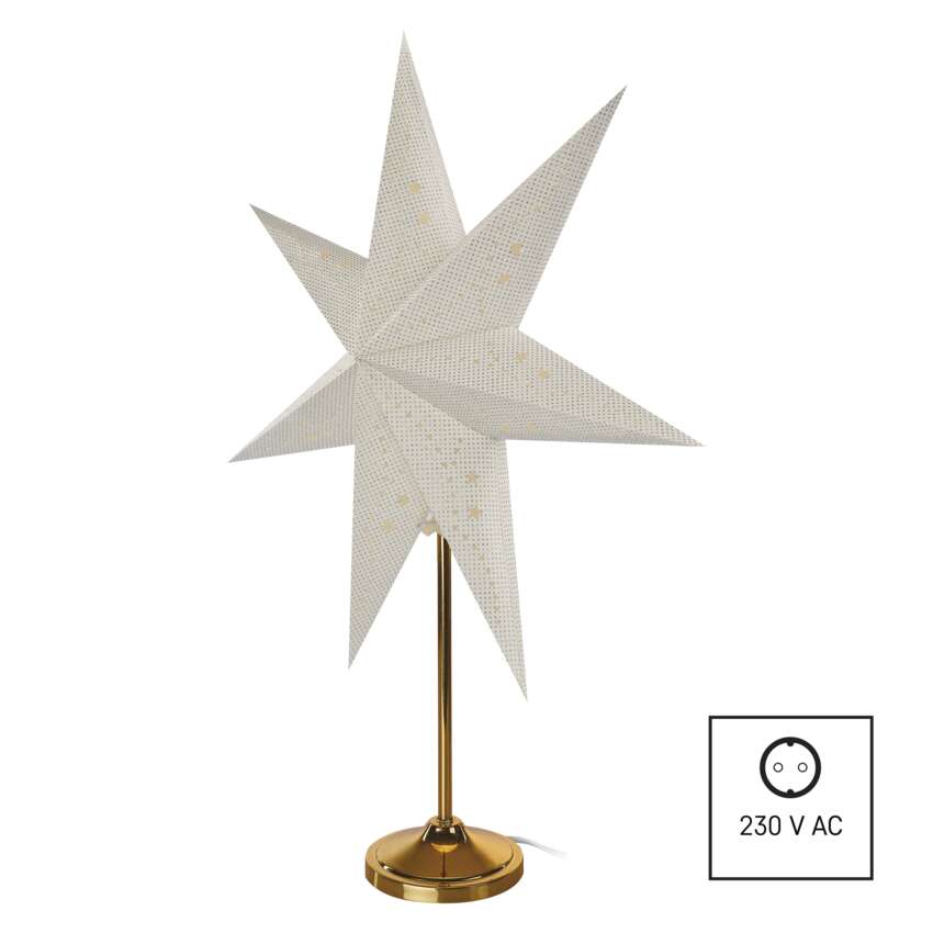Hogyan teremtsünk megfelelő karácsonyi hangulatot és hangulatos otthont? Egy állványon elhelyezett papírcsillag segít ebben, és minden belső térben remekül mutat az asztalon, komódon vagy ablakpárkányon. A csillag 1,6 m hosszú tápkábellel rendelkezik, és E14-es izzófoglalattal Önön múlik, hogy melyik színű izzót használja. Ha például fehér színű csillagot választ, és melegfehér színű izzót tesz bele, akkor gyönyörű aranyszínű fényben fog világítani, amely a csillagba lyuggatott kis lyukakon keresztül ragyogni fog. Ennek a dekorációnak az előnye a hajtogathatósága is, a csillagot egyszerűen össze kell hajtani a zsinór egyszerű meghúzásával.