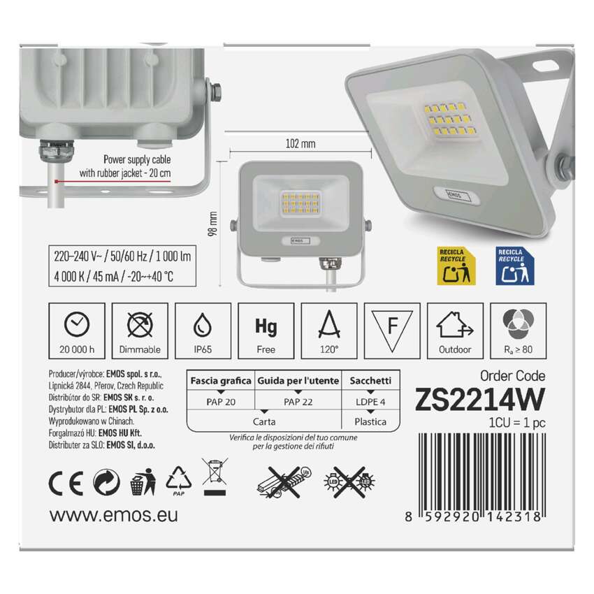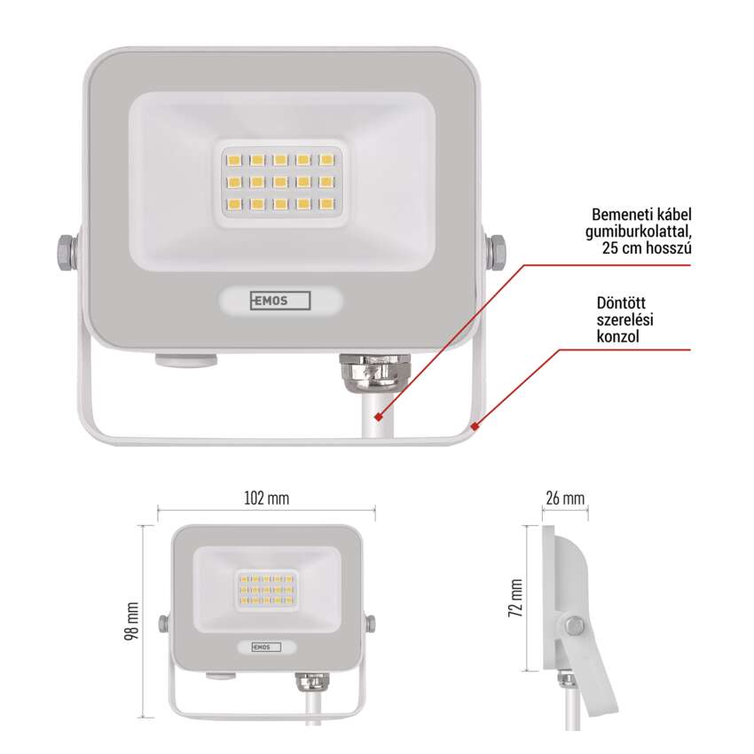LED reflektor GLARO 10W, fehér, IP65, 1000 lm, természetes fehér