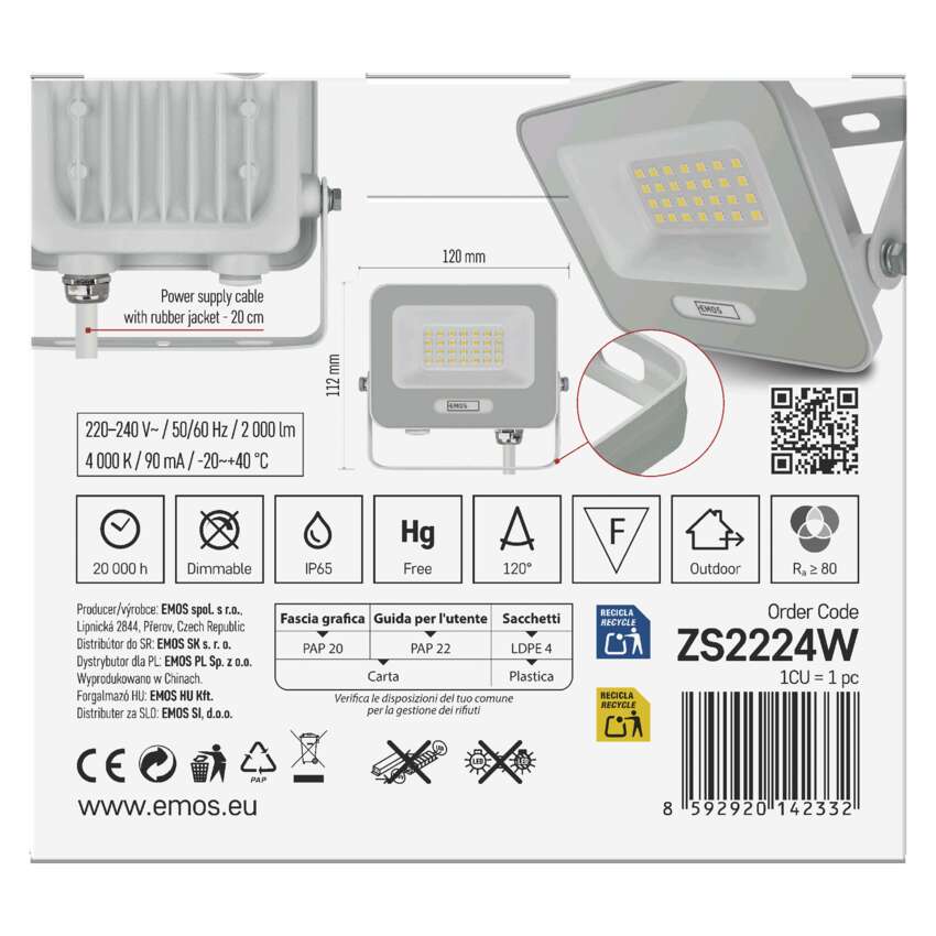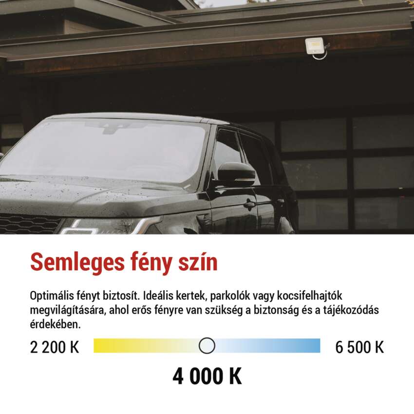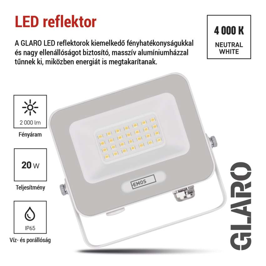 LED reflektor GLARO 20W, fehér, IP65, 2000 lm, természetes fehér