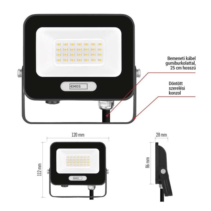 LED reflektor GLARO 20W, fekete, IP65, 2000 lm, természetes fehér