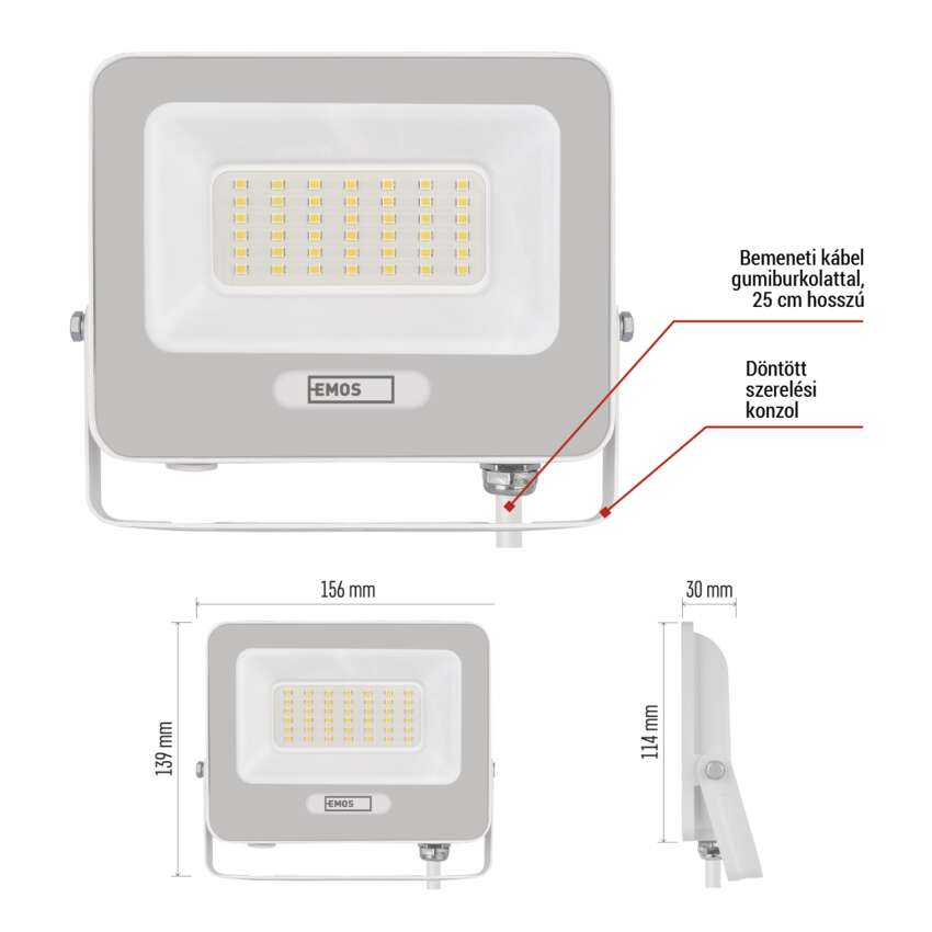 LED reflektor GLARO 30W, fehér, IP65, 3000 lm, természetes fehér