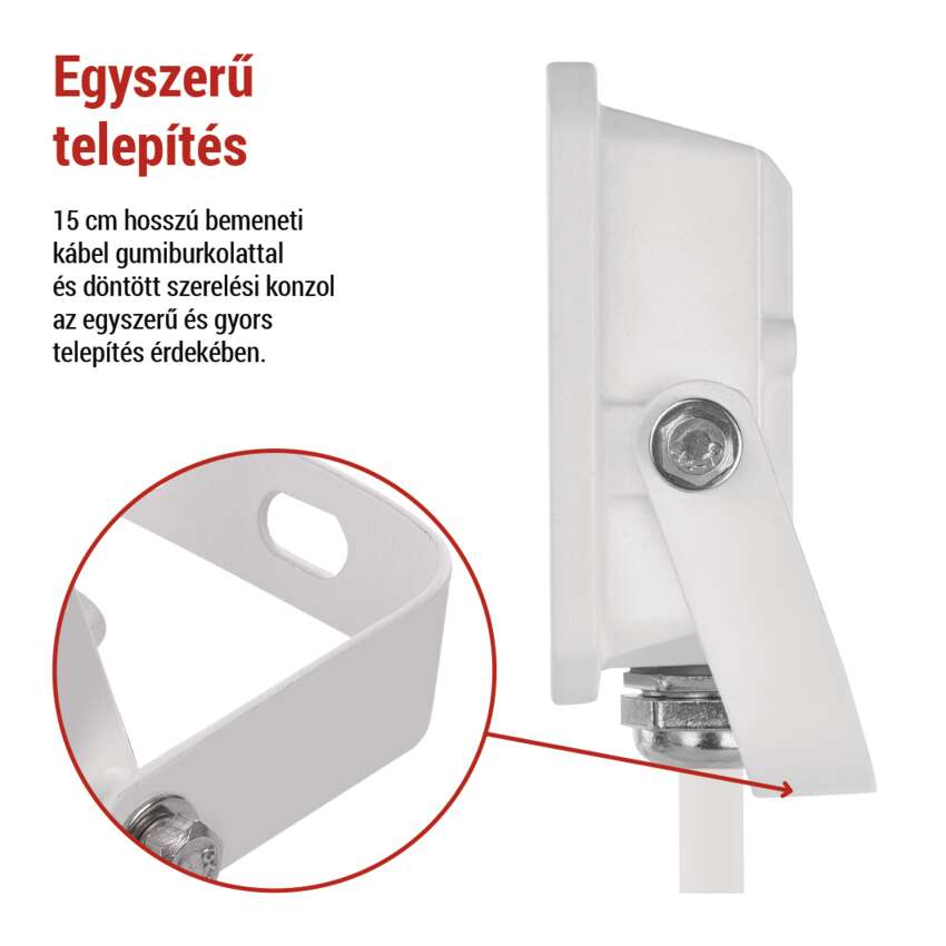 - A szögletes rögzítőkonzol lehetővé teszi a reflektor jobb megdöntését a egyszerű felszereléshez