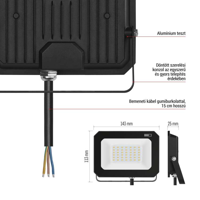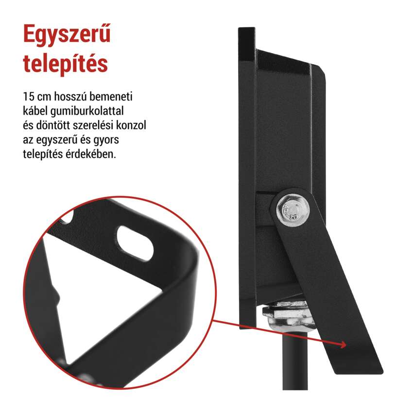 - A szögletes rögzítőkonzol lehetővé teszi a reflektor könnyebb megdöntését a egyszerű felszereléshez