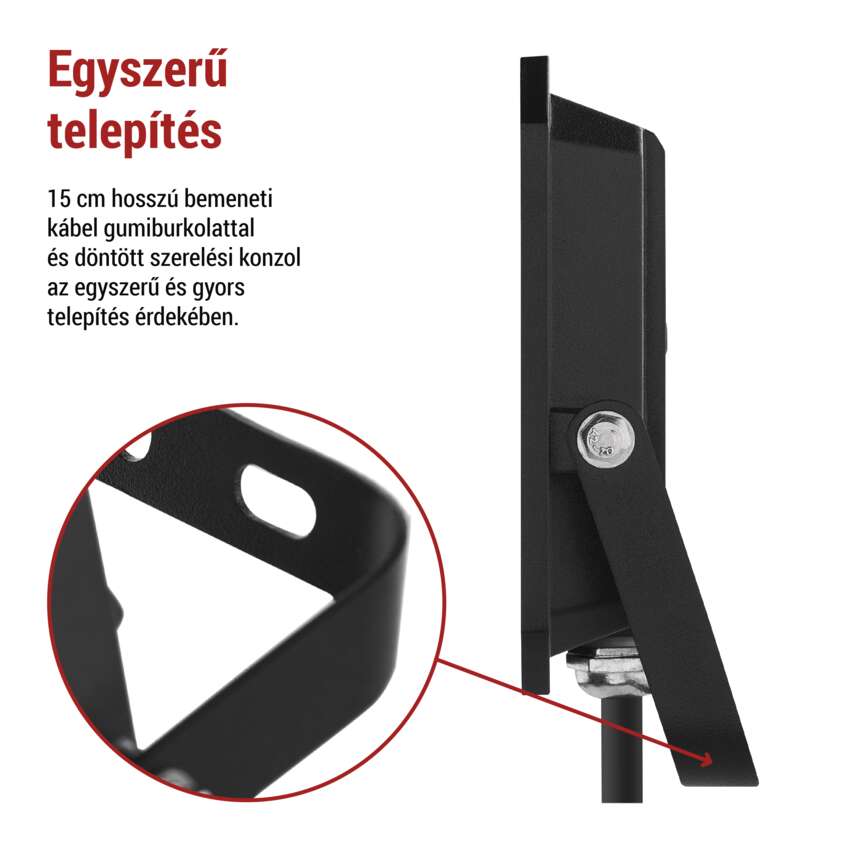 - A szögletes rögzítőkonzol lehetővé teszi a reflektor könnyebb megdöntését a egyszerű felszereléshez