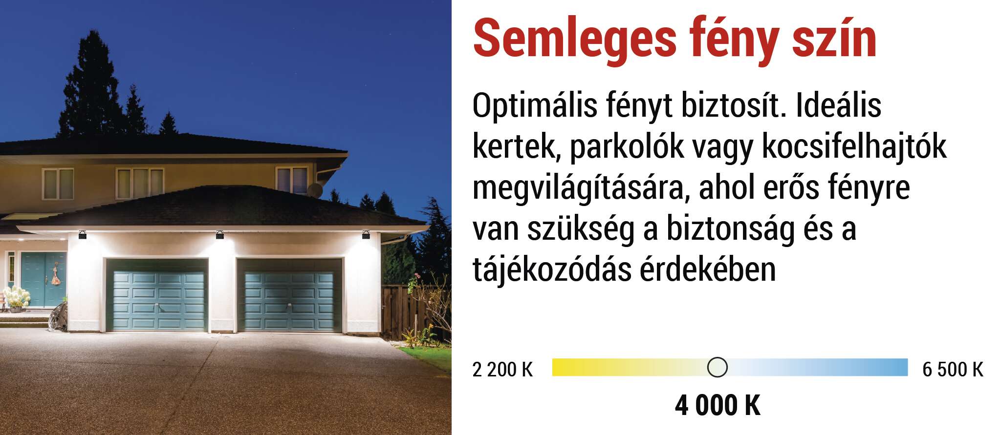 - Neutrális fehér fény megközelíti a természetes nappali fényt