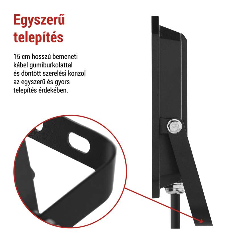- A szögletes rögzítőkonzol lehetővé teszi a reflektor könnyebb megdöntését a egyszerű felszereléshez
