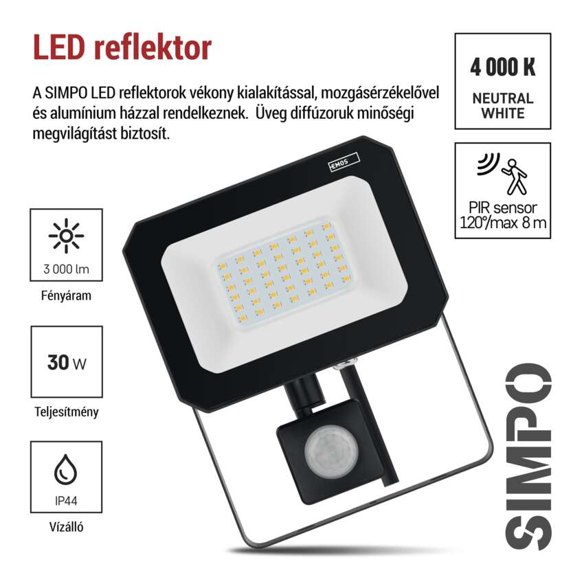 LED reflektor SIMPO PIR 30 W természetes fehér