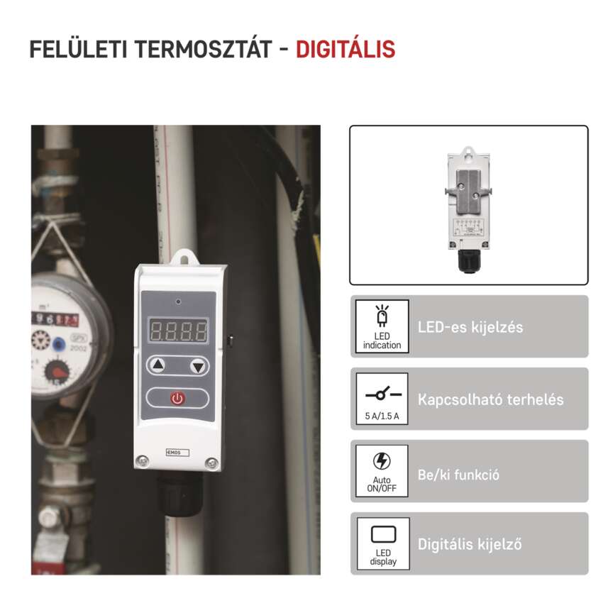 Csíptetős termosztát a kívánt felületre rögzítéshez. Ellenőrzi az üzemivíz-tartályokban és a fűtési rendszerekben lévő víz hőmérsékletét.Segítségével szabályozható a vízhőmérséklet, felügyelhetők a hőmérsékleti határértékek és a hőmérséklet-változások.