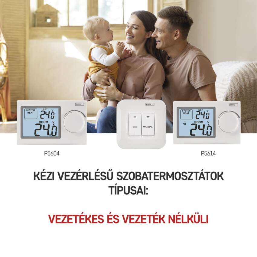 A manuális vezeték nélküli termosztát a fűtési és légkondicionáló rendszerhez is csatlakoztatható. Télen a termosztát fenntartja az optimális hőmérsékletet, ezáltal megelőzhető a költséges és egészségtelen túlfűtés. A forró nyári napokon a termosztát gondoskodik a hűtésről kellemetlen hőmérsékleti sokkok nélkül. Élvezze a tökéletes komfortot évhosszat!