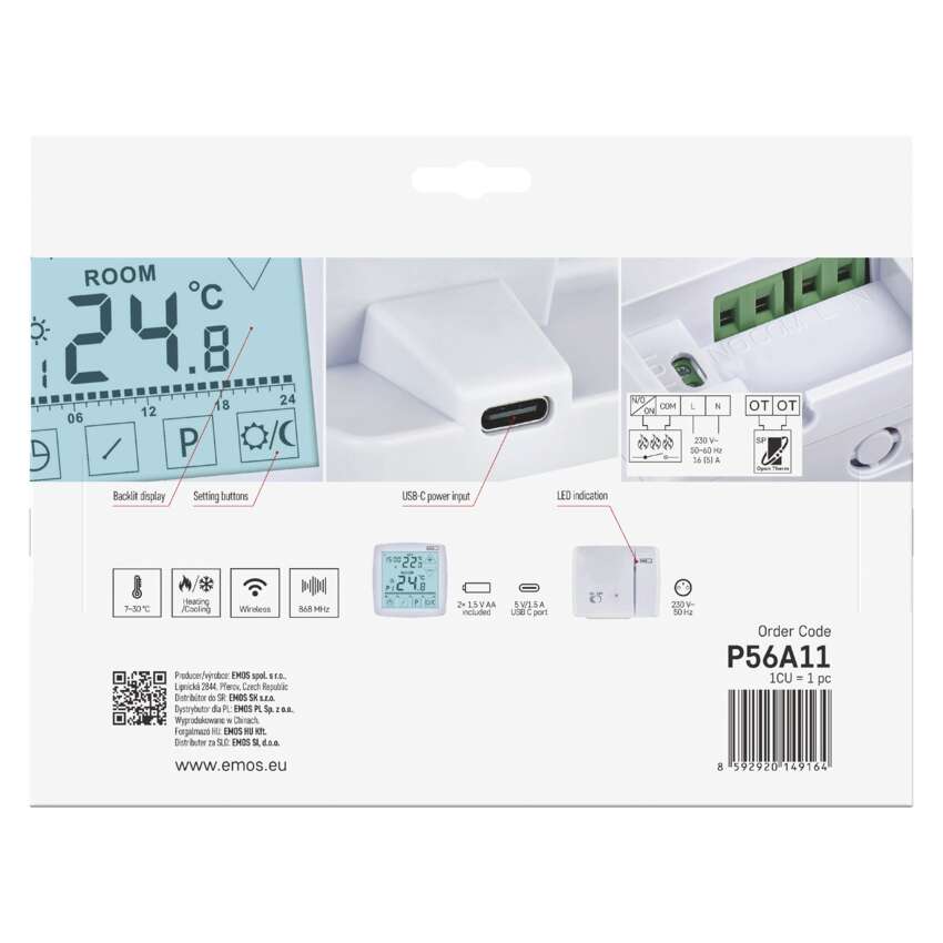 Programozható vezeték nélküli OpenTherm szobatermosztát P56A11