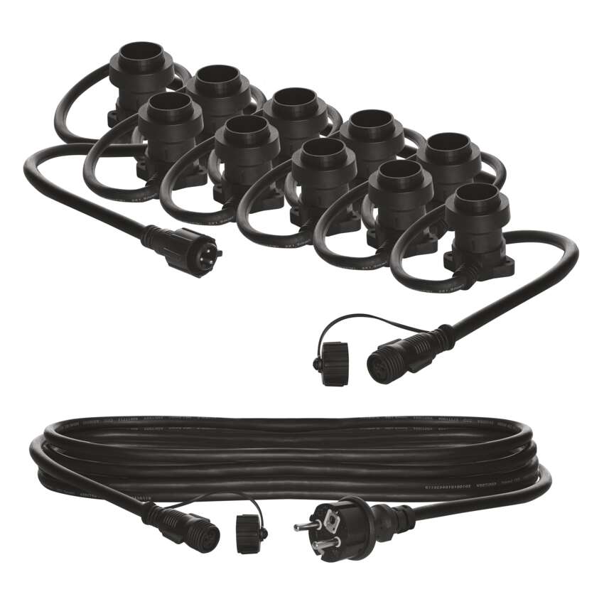 Sorolható fényfüzér 10 db E27 foglalattal, START SZETT, 7,35 m, kültéri és beltéri