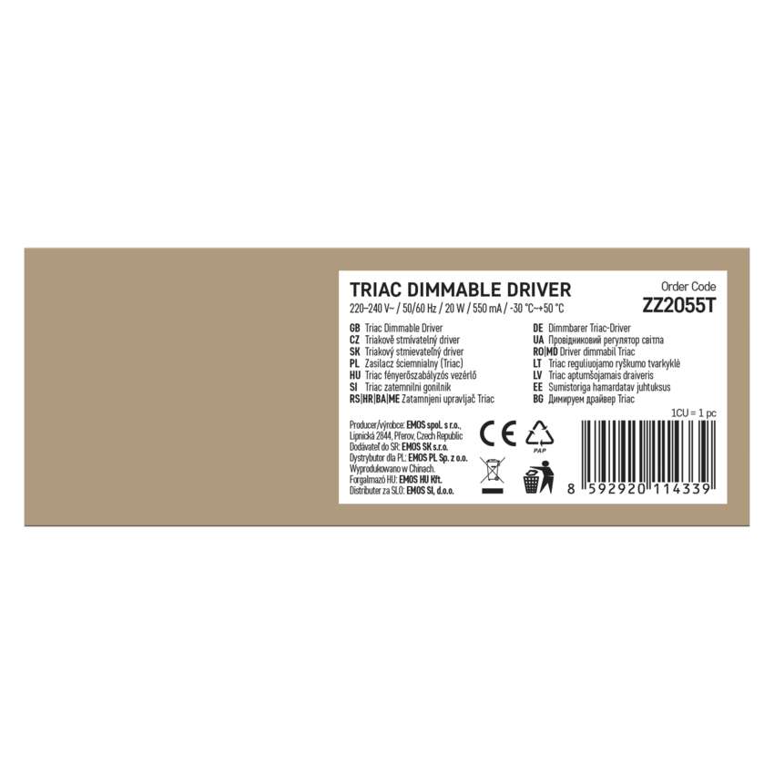 Triac dimmelhető meghajtó LED lámpatesthez 550mA 20W