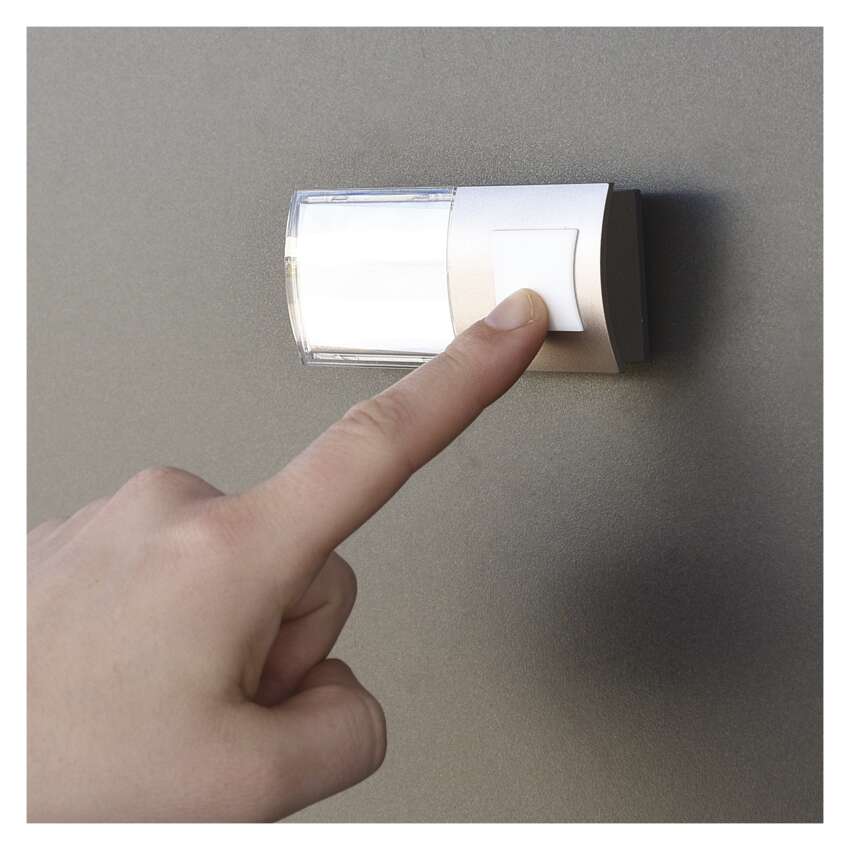 Gomb: Rögzítse a burkolat hátoldalát a falhoz kétoldalas ragasztószalaggal (mellékelve) vagy két csavarral. Bár a gomb időjárásálló, helyezze el úgy, hogy védve legyen, pl. egy mélyedésbe.