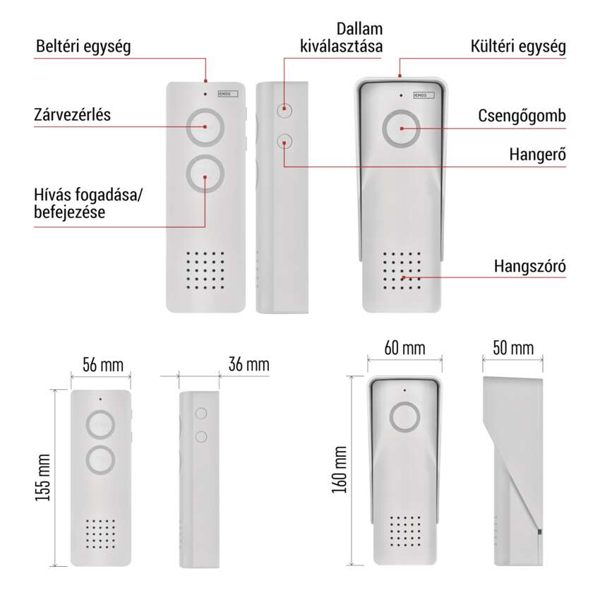 | az ajtóállomás mérete | 160 × 60 × 50 mm |