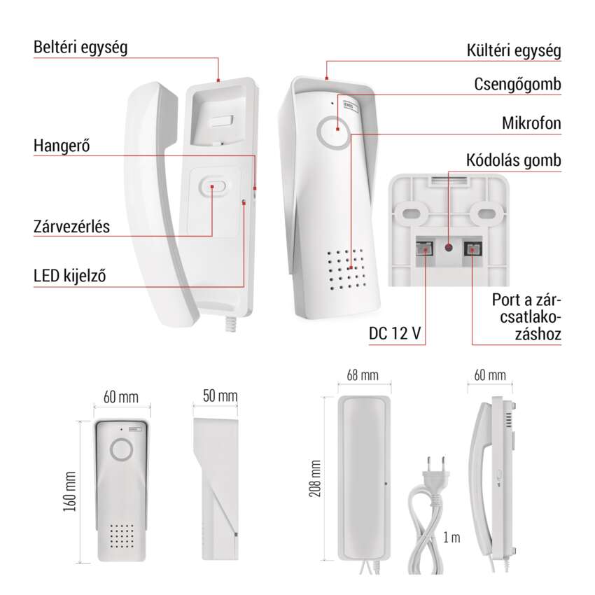 | az ajtóállomás mérete | 160 × 60 × 50 mm |
