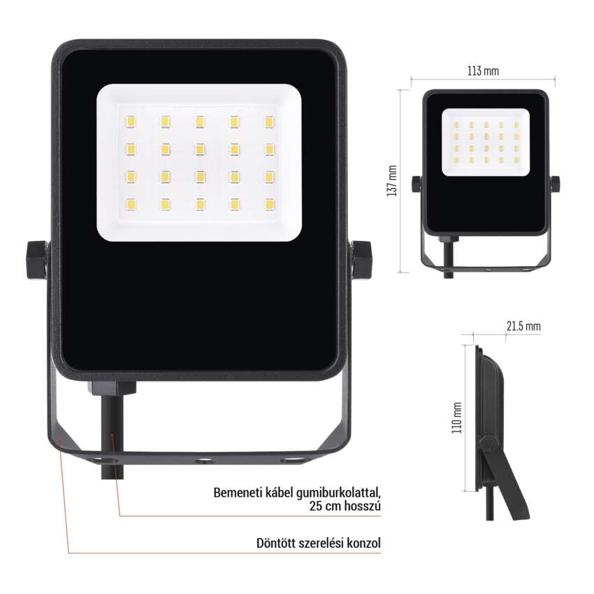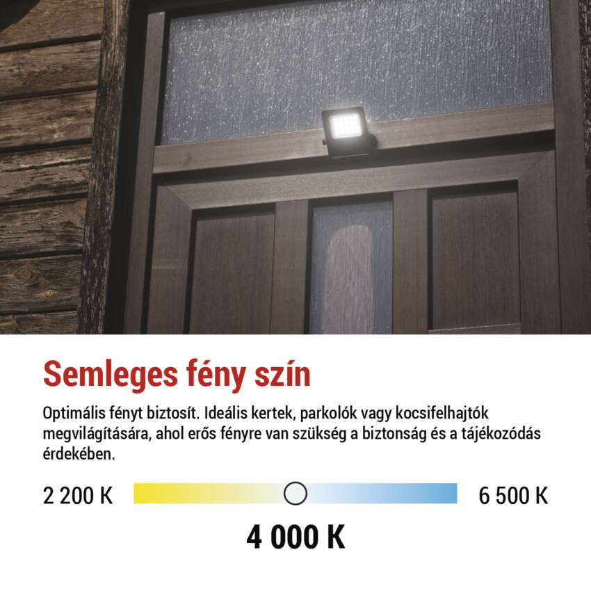 Ez a reflektor kemény kültéri környezetre készült. Az IP65 minősítésnek köszönhetően gond nélkül ellenáll az esőnek, pornak és fröccsenő víznek. A merev alumíniumtest megvédi a belső elektronikát a sérülésektől, miközben hatékony hőelvezetőként szolgál a hő elvezetéséhez és az élettartam meghosszabbításához. A hosszú gumikábel még hideg időben is rugalmas marad, így a telepítés még télen is egyszerű és biztonságos.